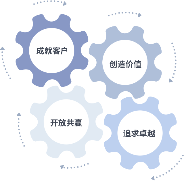 成就客户是一切决策的出发点,创造价值是衡量所有工作的标准,追求卓越是suncitygroup太阳集团做事做人的态度,开放共赢是suncitygroup太阳集团的格局也是最终的结果。价值观的齿轮环环相扣,推动着组织里的每个人不断向前。